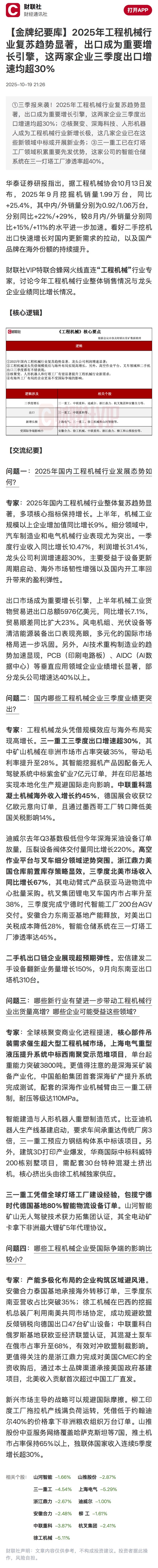 arrow-up11arrow-down1image21:26 【金牌纪要库】2025年工程机械行业复苏趋势显著,出口成为重要增长引擎,这两家企业三季度出口增速均超30%CLSMA to 财联社 10合一 实时滚动更新中文 · 24 hours agomessage-square0linkfedilink