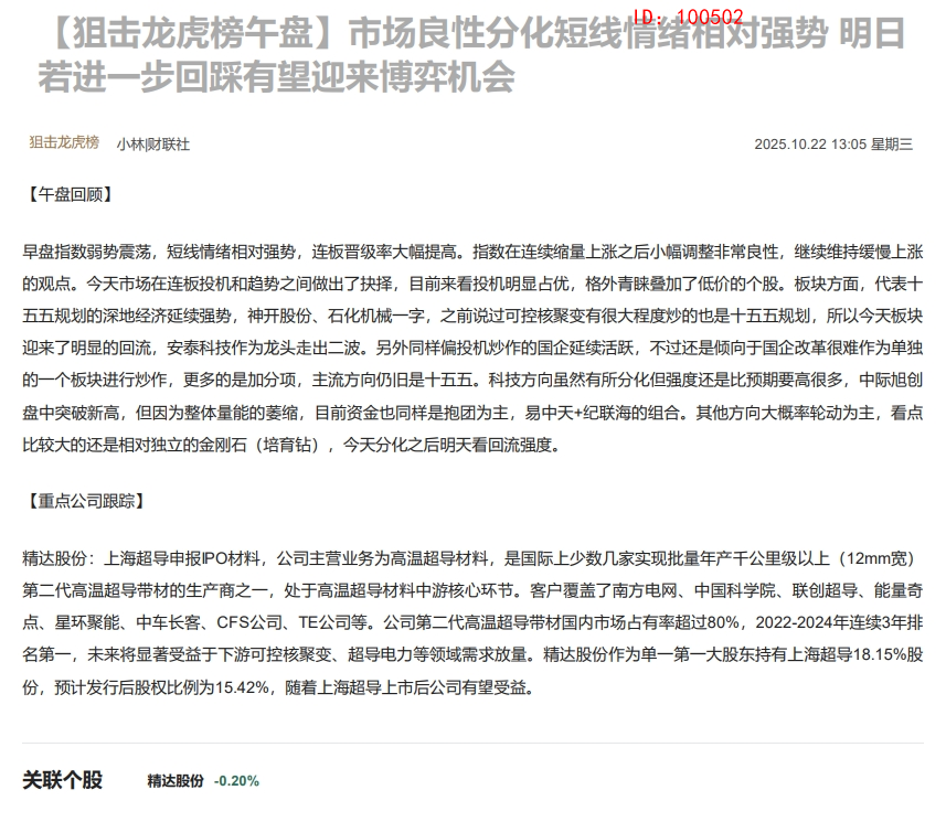 CLSMA to 财联社 10合一 实时滚动更新中文 · 10 hours ago13:01 【狙击龙虎榜午盘】市场良性分化短线情绪相对强势 明日若进一步回踩有望迎来博弈机会imagemessage-square0linkfedilinkarrow-up11arrow-down10