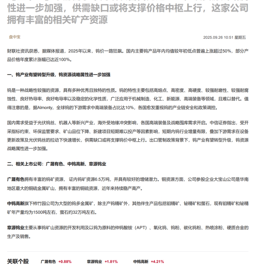 CLSMA to 财联社 10合一 实时滚动更新中文 · 24 days ago10:51【盘中宝】下游需求中高端装备占比达10%,该资源战略属性进一步加强,供需缺口或将支撑价格中枢上行,这家公司拥有丰富的相关矿产资源imagemessage-square0linkfedilinkarrow-up11arrow-down10