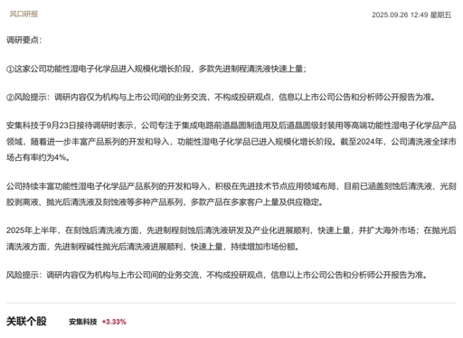 CLSMA to 财联社 10合一 实时滚动更新中文 · 25 days ago12:49【机构调研】这家功能性湿电子化学品供应商多款先进制程清洗液快速上量imagemessage-square0linkfedilinkarrow-up11arrow-down10