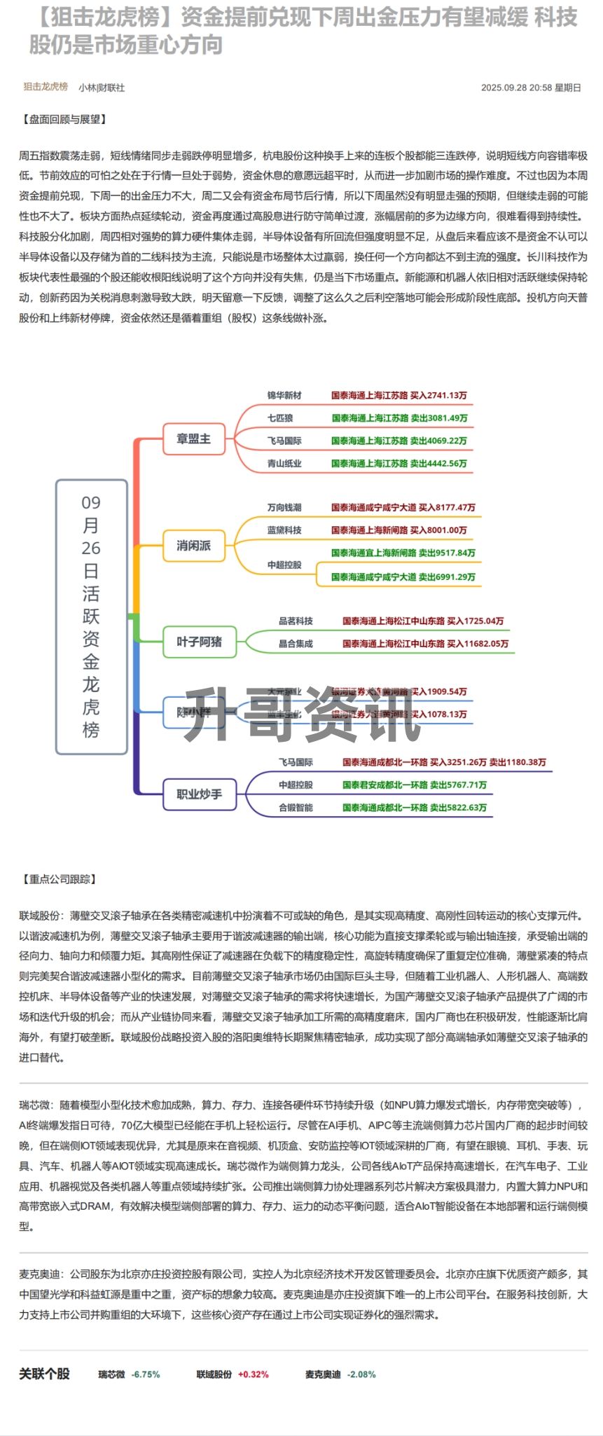 20:58 【狙击龙虎榜】资金提前兑现下周出金压力有望减缓 科技股仍是市场重心方向