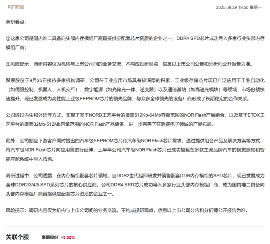 19:50【机构调研】这家公司已发展成为全球DDR2/3/4/5 SPD系列芯片的核心供应商
