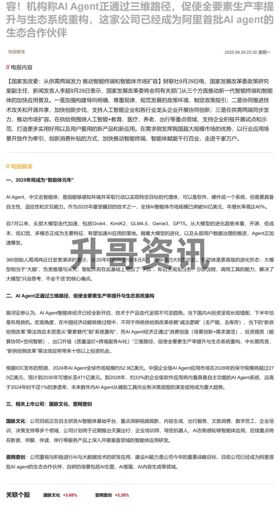 22:30【电报解读】国家发改委要求推动智能终端和智能体市场扩容!机构称AI Agent正通过三维路径,促使全要素生产率提升与生态系统重构,这家公司已经成为阿里首批AI agent的生态合作伙伴