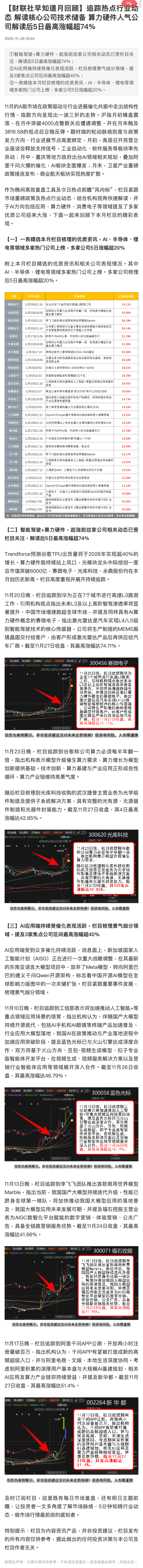 16:54【财联社早知道】追踪热点行业动态 解读核心公司技术储备 算力硬件人气公司解读后5日最高涨幅超74%