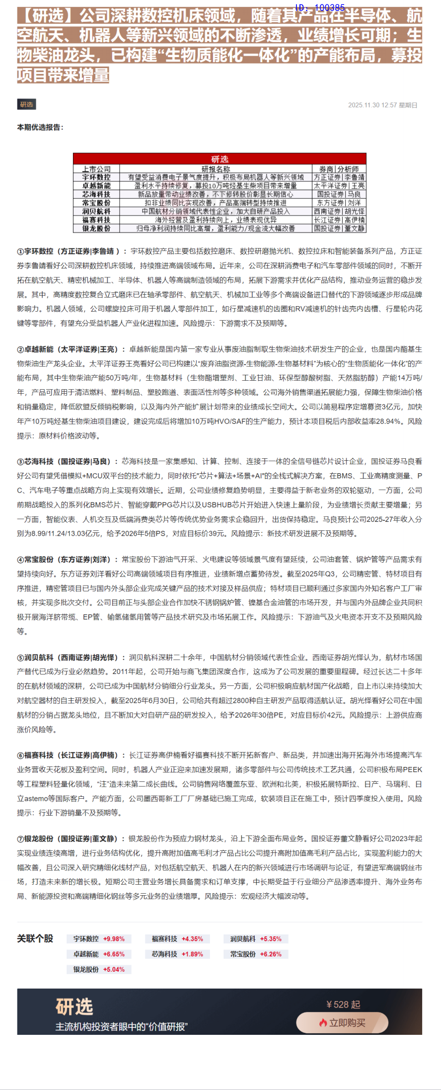 CLSMA to 财联社 10合一 实时滚动更新中文 · 13 hours ago12:57【研选】公司深耕数控机床领域,随着其产品在半导体、航空航天、机器人等新兴领域的不断渗透,业绩增长可期;生物柴油龙头,已构建“生物质能化一体化”的产能布局,募投项目带来增量imagemessage-square0linkfedilinkarrow-up11arrow-down10