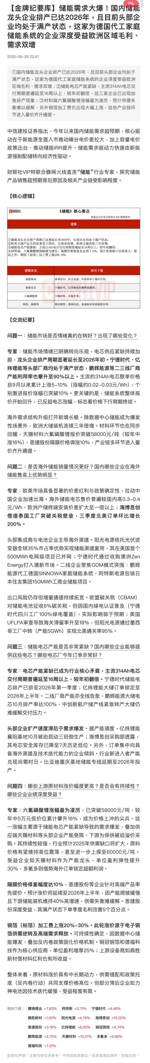 CLSMA to 财联社 10合一 实时滚动更新中文 · 21 days ago22:47【金牌纪要库】储能需求大爆!国内储能龙头企业排产已达2026年,且目前头部企业均处于满产状态,这家为德国代工家庭储能系统的企业深度受益欧洲区域毛利、需求双增imagemessage-square0linkfedilinkarrow-up11arrow-down10