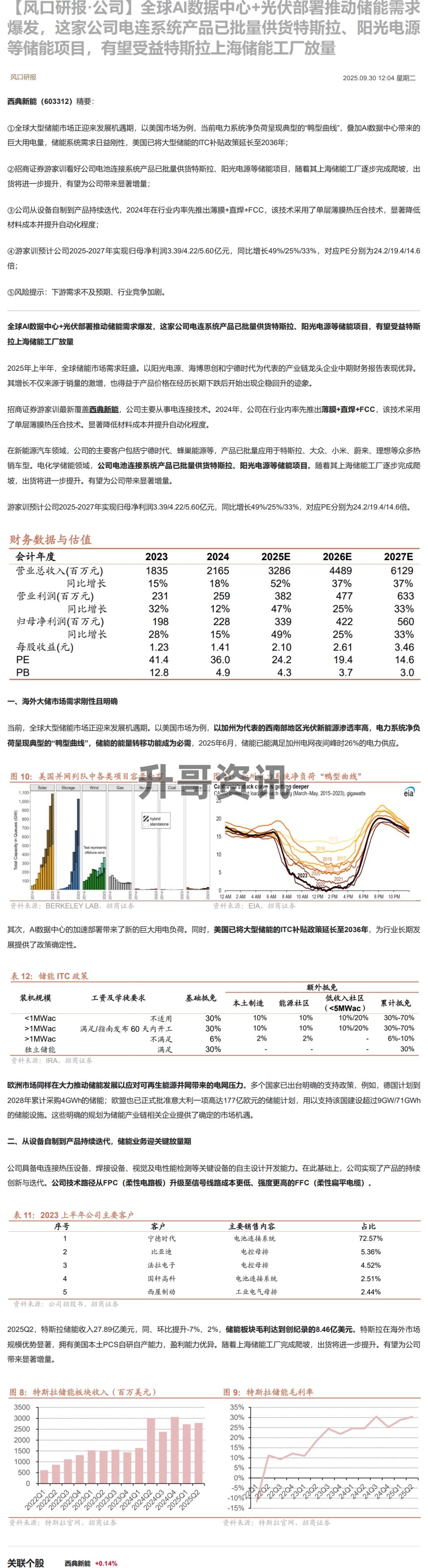 CLSMA to 财联社 10合一 实时滚动更新中文 · 20 days ago12:04【风口研报·公司】全球AI数据中心+光伏部署推动储能需求爆发,这家公司电连系统产品已批量供货特斯拉、阳光电源等储能项目,有望受益特斯拉上海储能工厂放量imagemessage-square0linkfedilinkarrow-up11arrow-down10