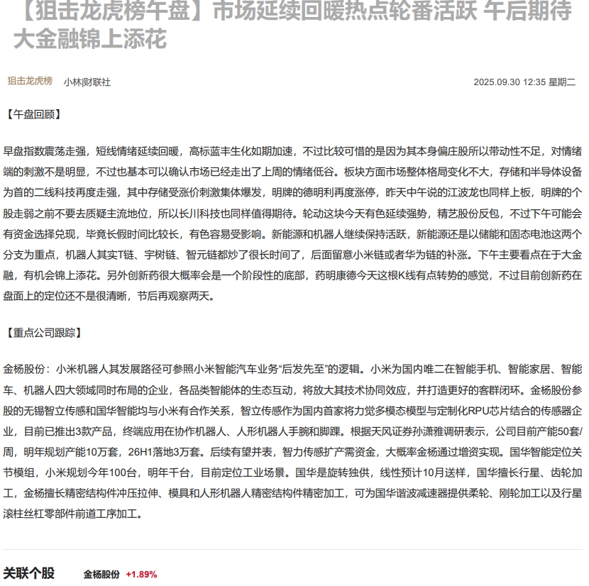CLSMA to 财联社 10合一 实时滚动更新中文 · 20 days ago12:35【狙击龙虎榜午盘】市场延续回暖热点轮番活跃 午后期待大金融锦上添花imagemessage-square0linkfedilinkarrow-up11arrow-down10