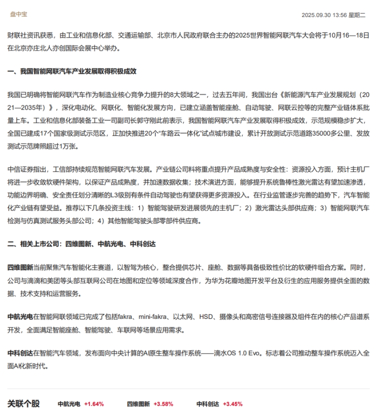 CLSMA to 财联社 10合一 实时滚动更新中文 · 20 days ago13:56【盘中宝】产业发展取得积极成效,示范规模稳步扩大,这家公司当前聚焦该智能化主赛道,与头部企业在细分领域有深度合作imagemessage-square0linkfedilinkarrow-up11arrow-down10